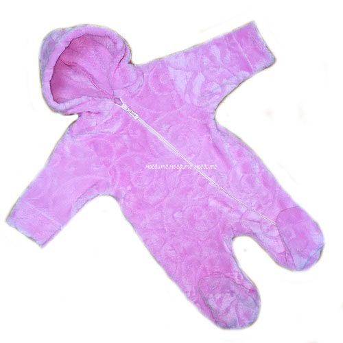 Комбинезон с капюшоном, с закрытыми ножками, спереди косая молния до конца одной ножки, с длинными рукавами.